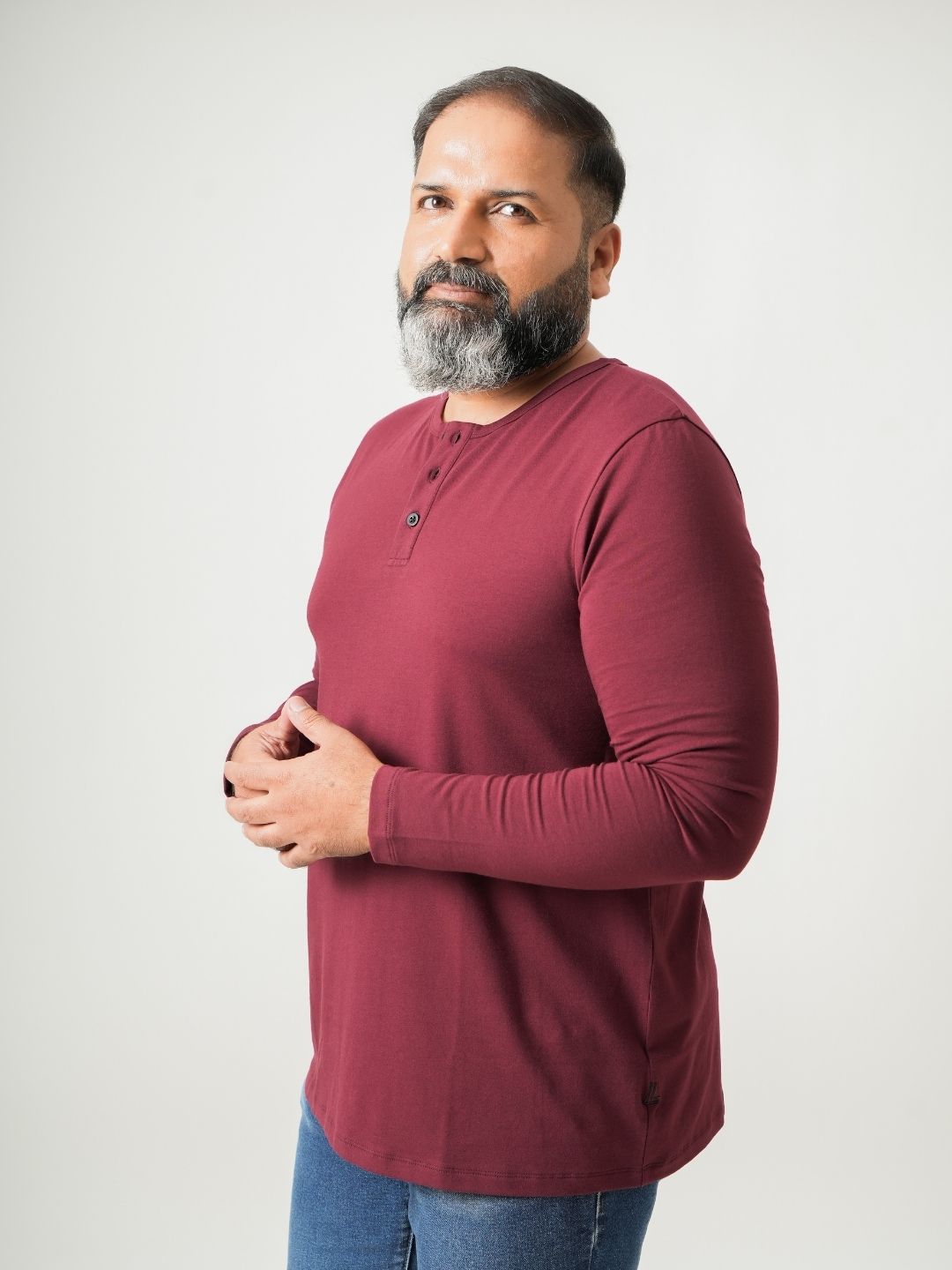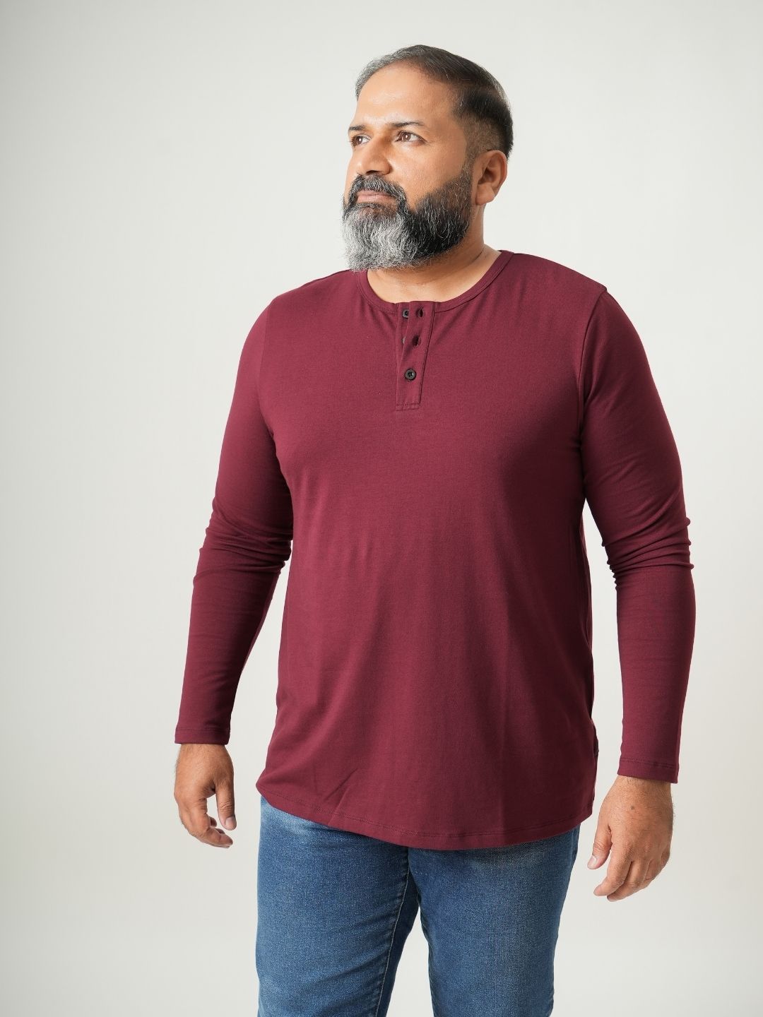 Balanced Fit - Henley Neck Long Sleeve - Red Rock