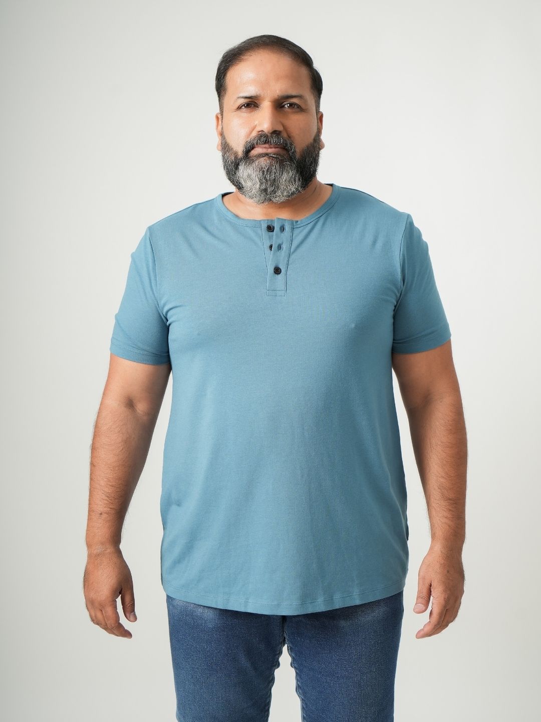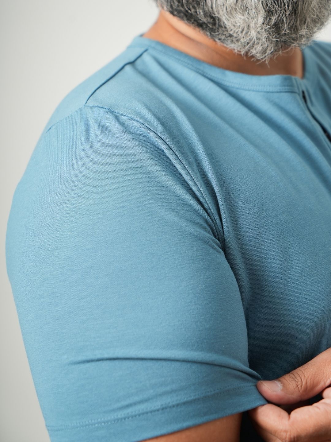 Balanced Fit - Henley Neck Short Sleeve - Cobalt Blue
