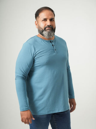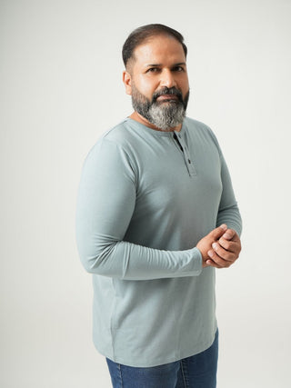 Balanced Fit - Henley Neck Long Sleeve - Sage Blue