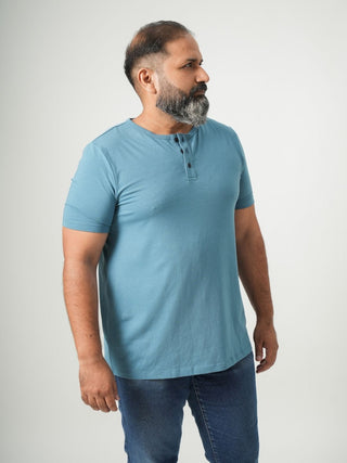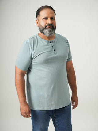 Balanced Fit - Henley Neck Short Sleeve - Sage Blue