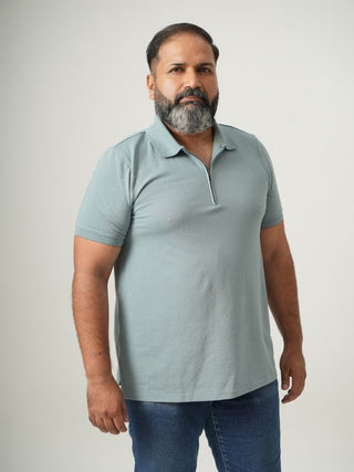 Balanced Fit - Zip Polo Short Sleeve - Sage Blue