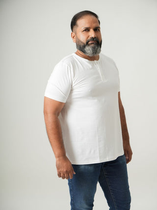 Balanced Fit - Henley Neck Short Sleeve - Classic White