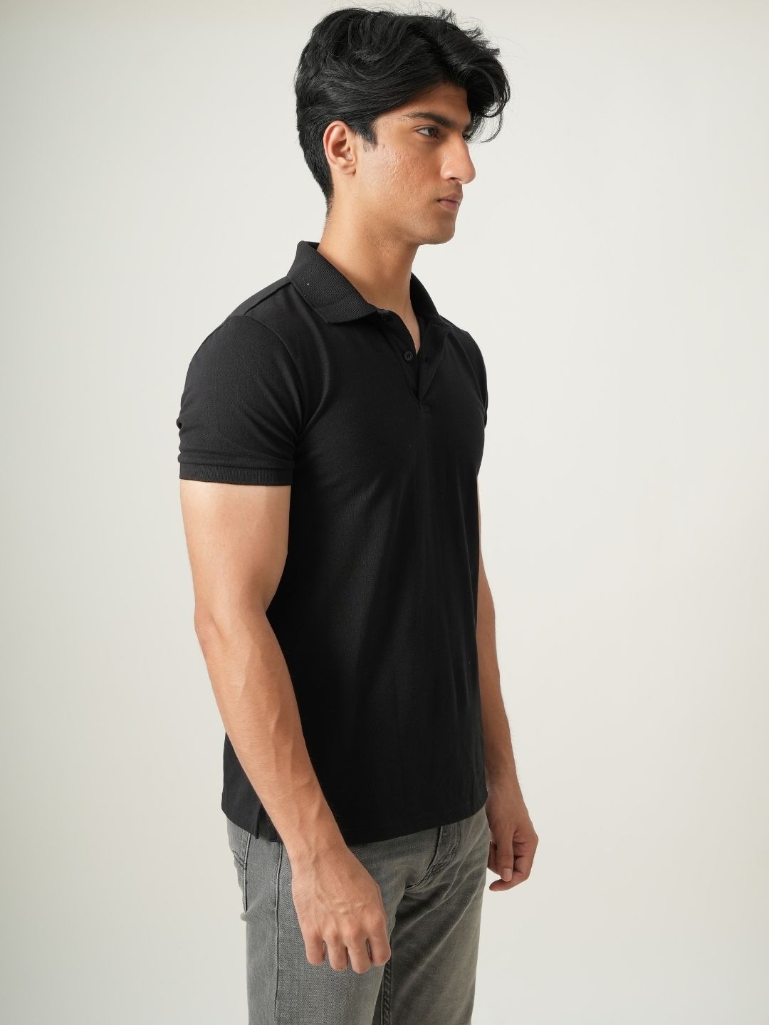 V-Taper Fit ( V-fit) - Button Polo Short Sleeve - Charcoal Black