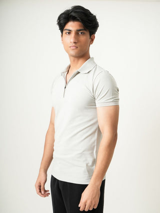 V-Taper Fit (V-fit) - Zip Polo Short Sleeve - Granite Gray