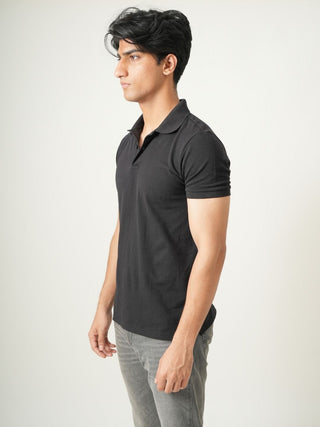 V-Taper Fit ( V-fit) - Button Polo Short Sleeve - Charcoal Black