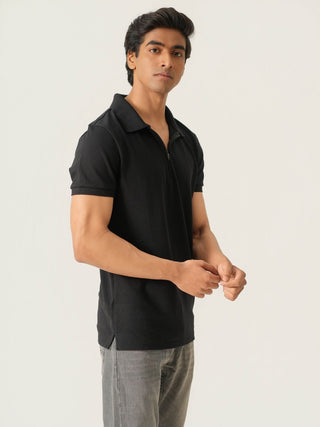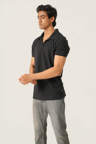 V-Taper Fit (V-fit) - Zip Polo Short Sleeve - Charcoal Black