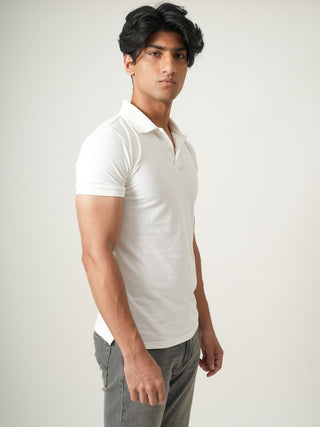 V-Taper Fit (V-fit) - Zip Polo Short Sleeve - Classic White