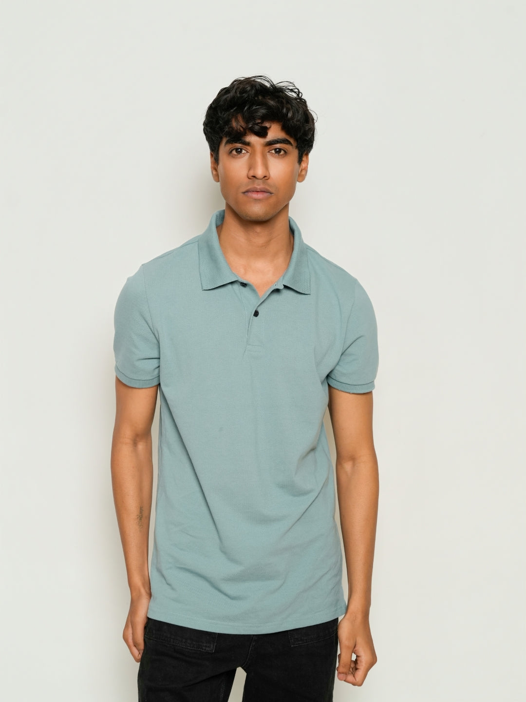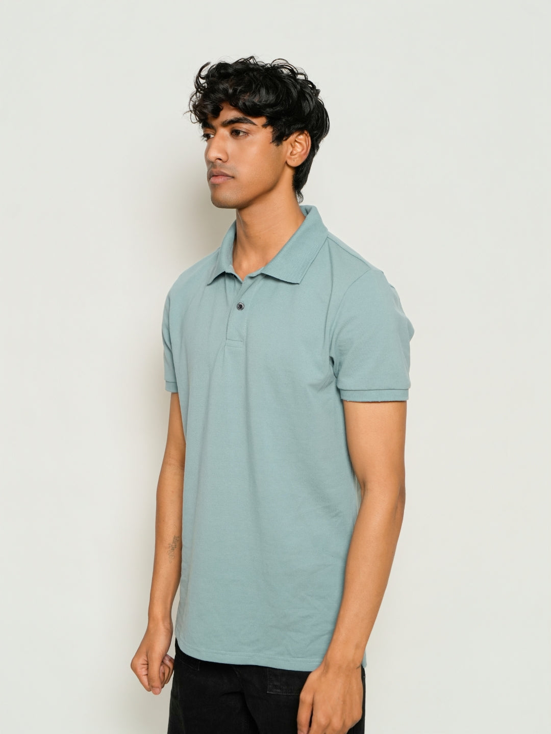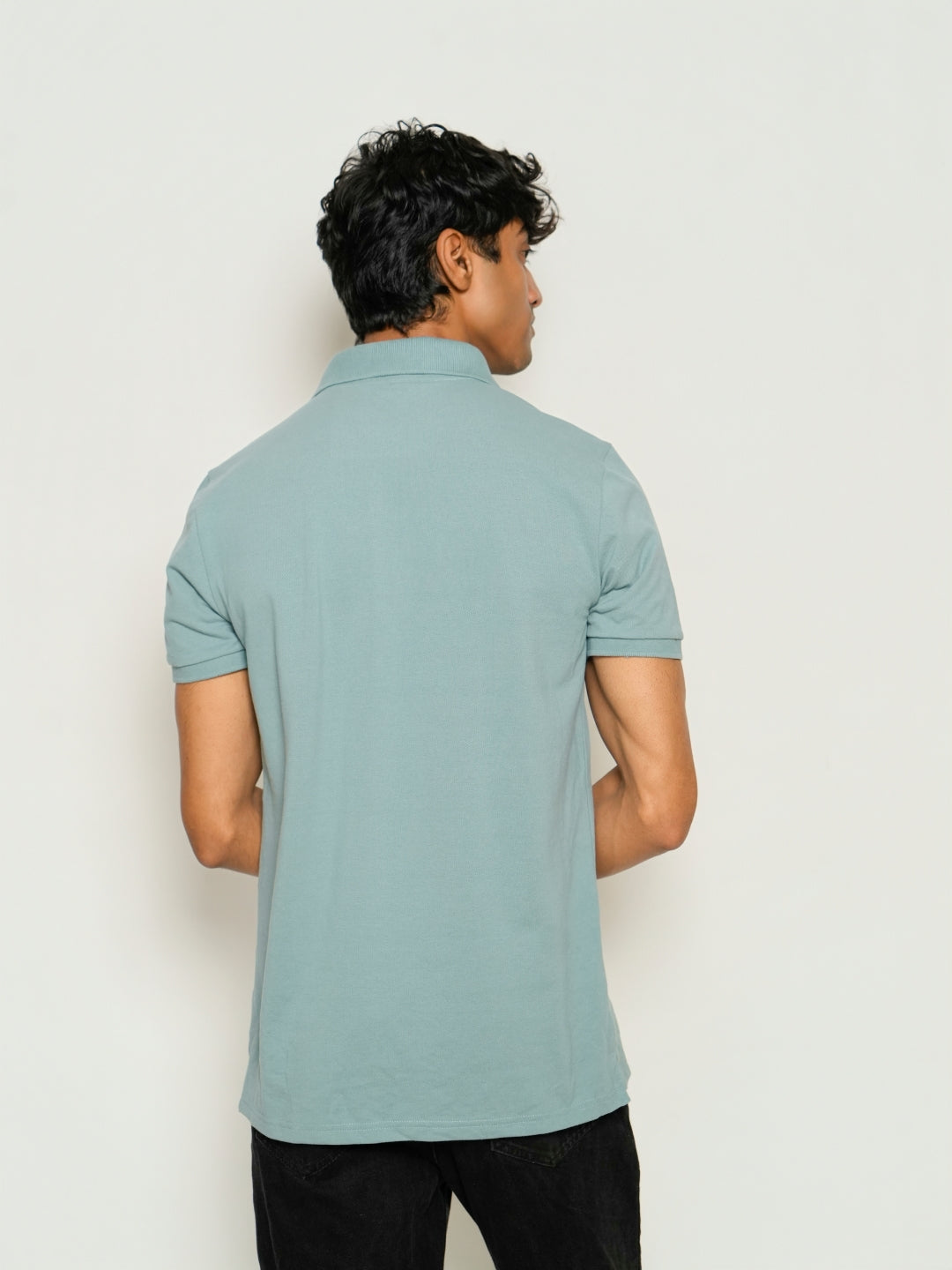Sleek Fit - Button Polo Short Sleeve - Sage Blue