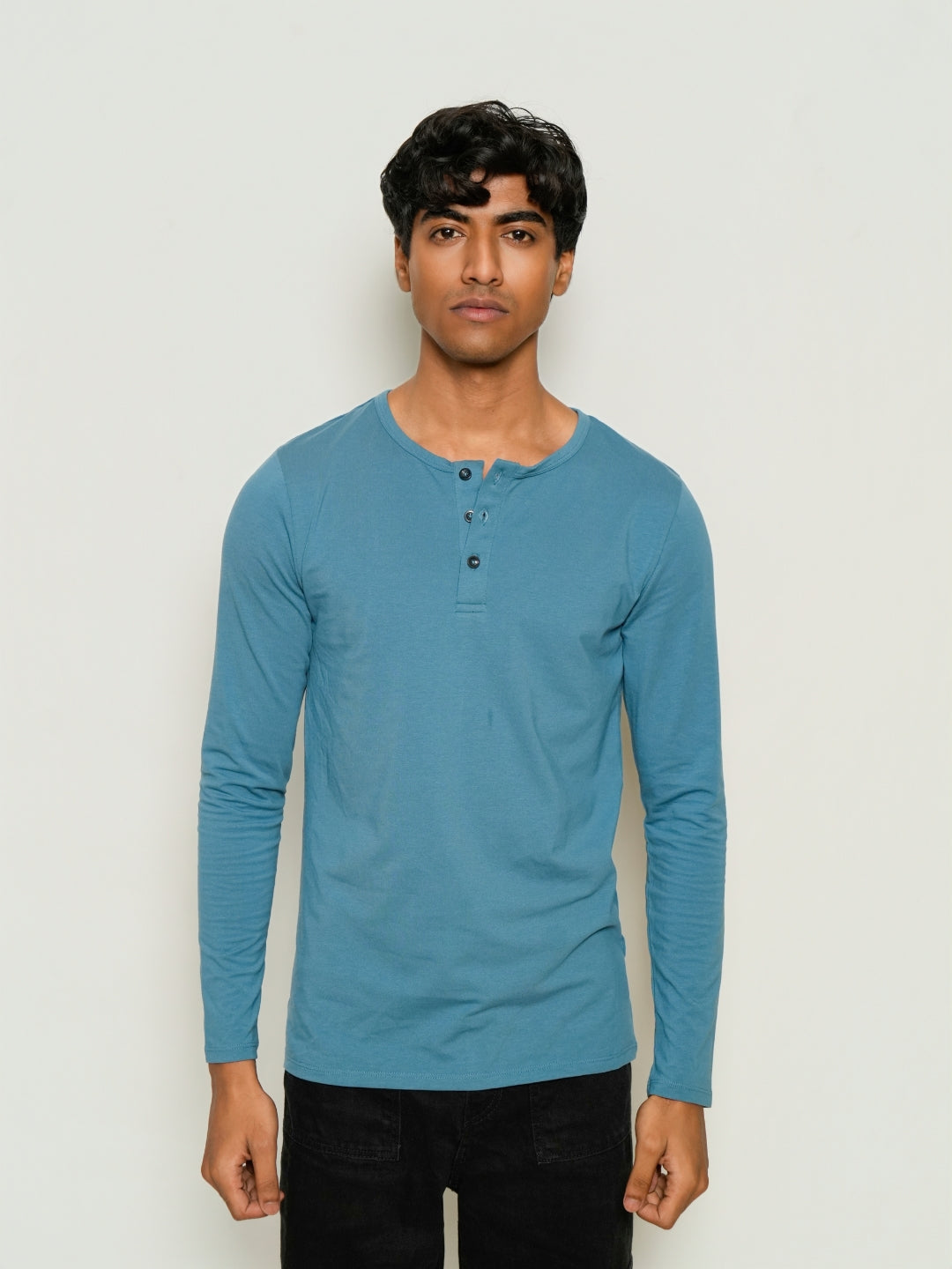 Sleek Fit- Henley Neck Long Sleeve- Cobalt Blue