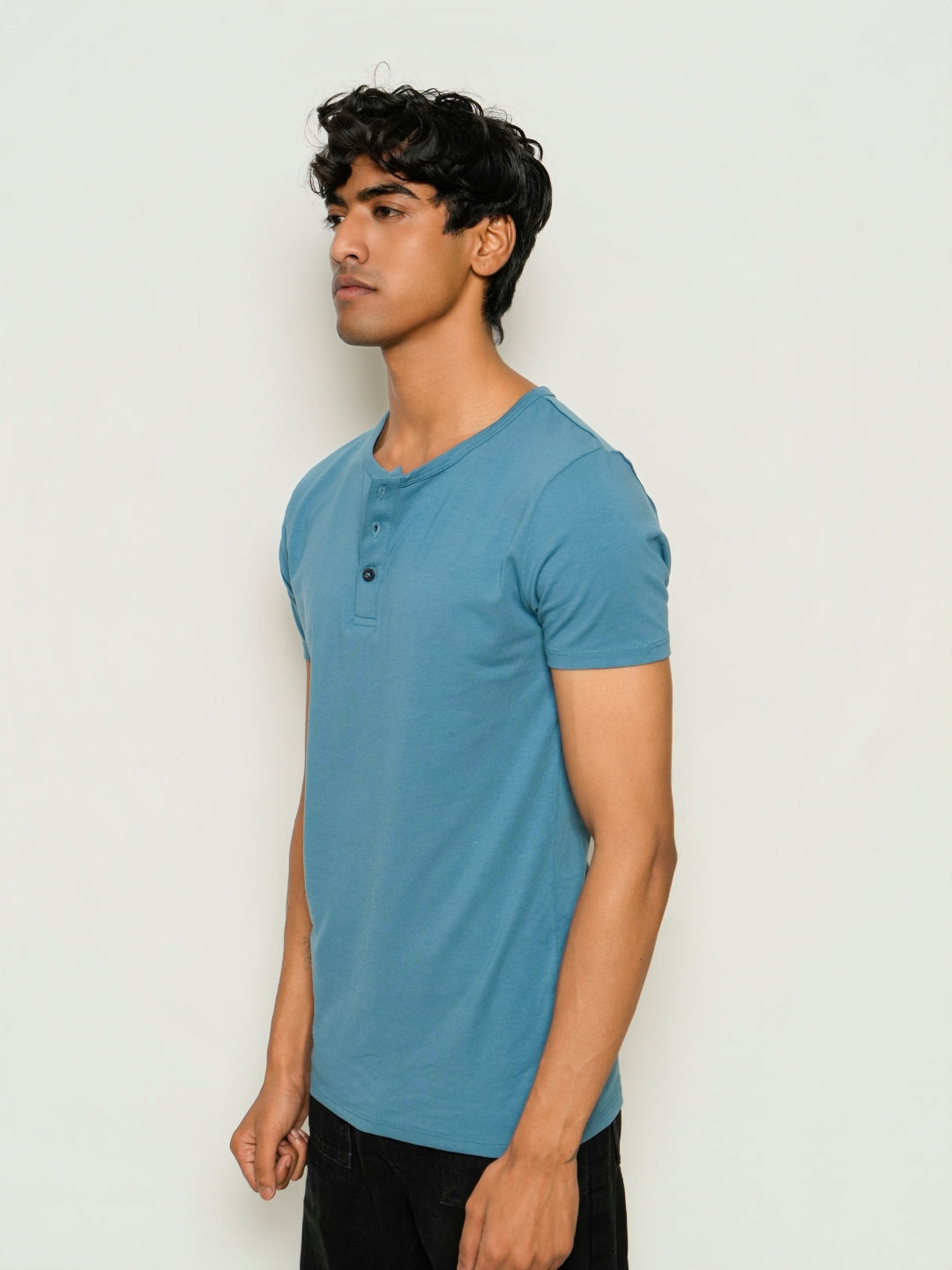 Sleek Fit- Henley Neck Short Sleeve- Cobalt Blue
