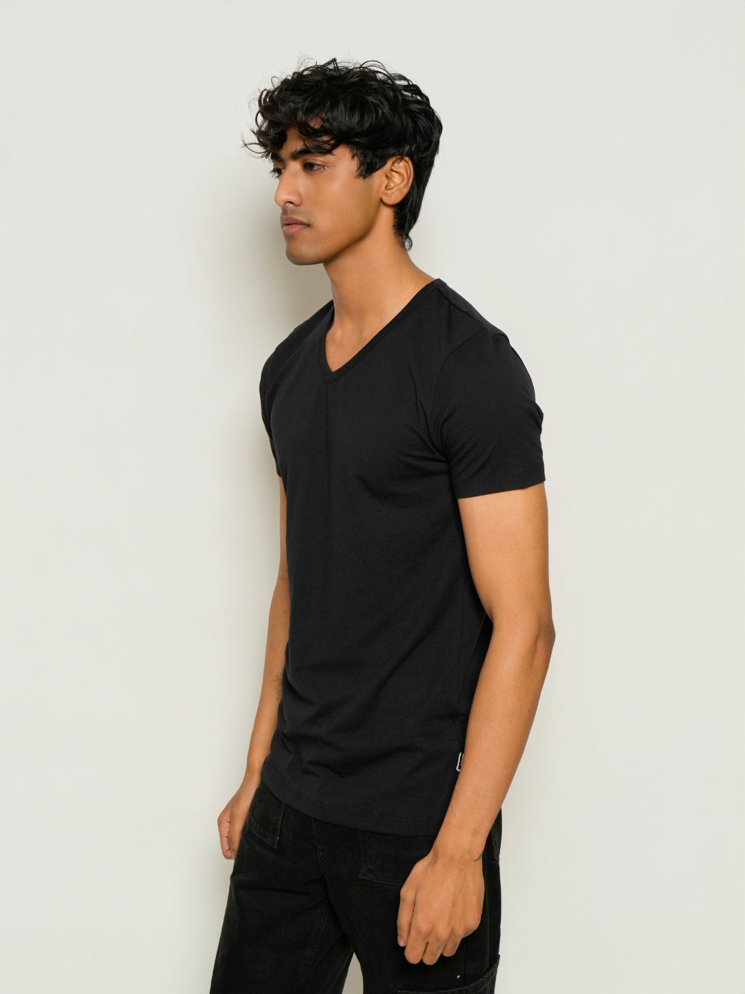 Sleek Fit- V-Neck Short Sleeve- Charcoal Black