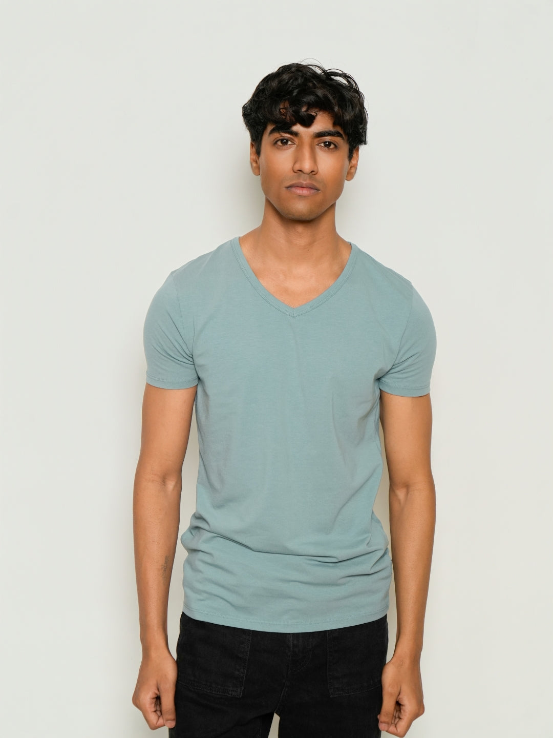 Sleek Fit- V-Neck Short Sleeve- Sage Blue