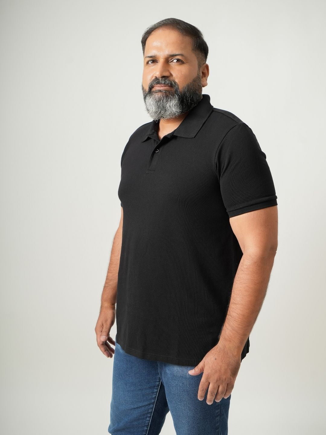 Balanced Fit - Button Polo Short Sleeve - Charcoal Black