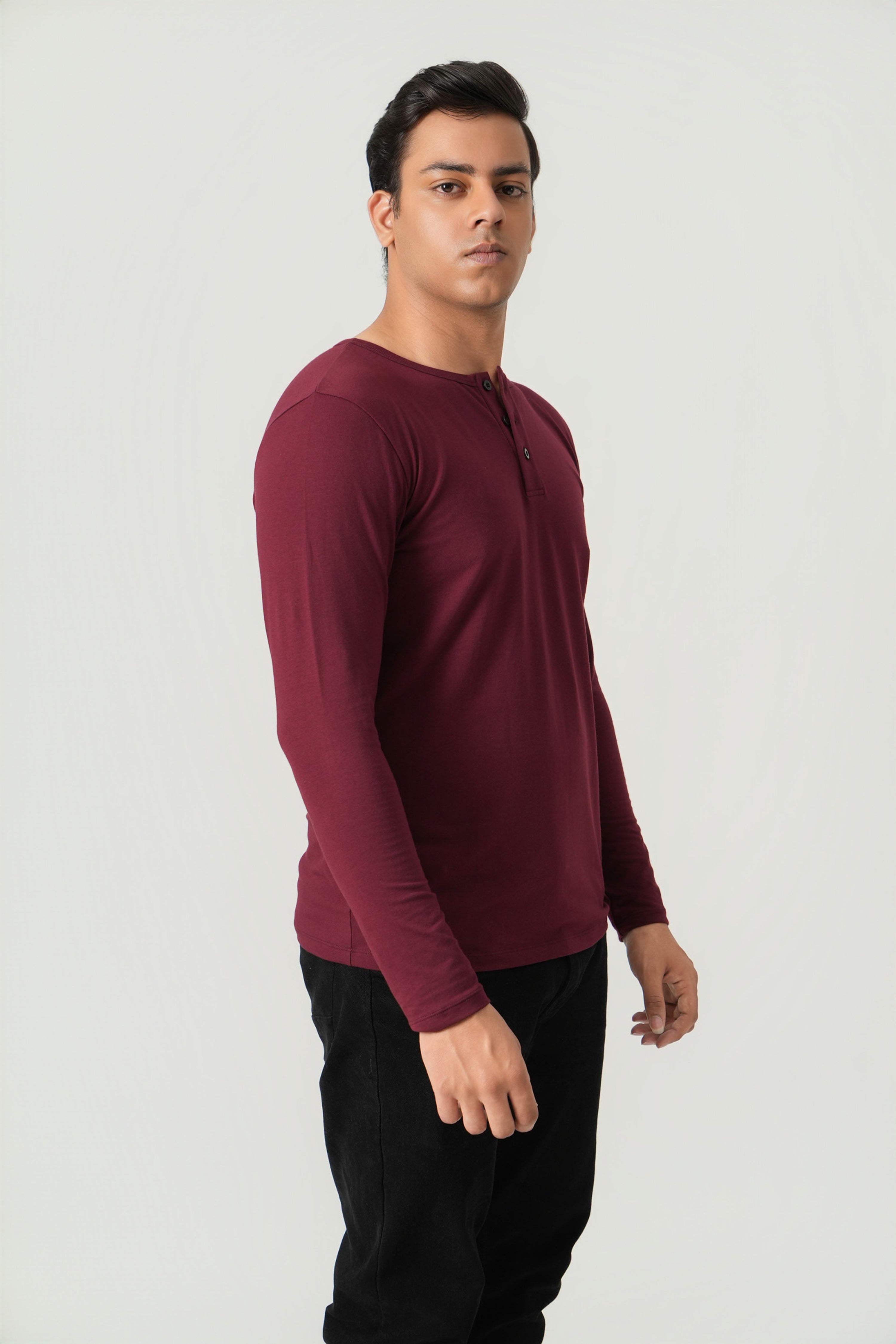 Define Fit - Henley Neck Long Sleeve - Red Rock