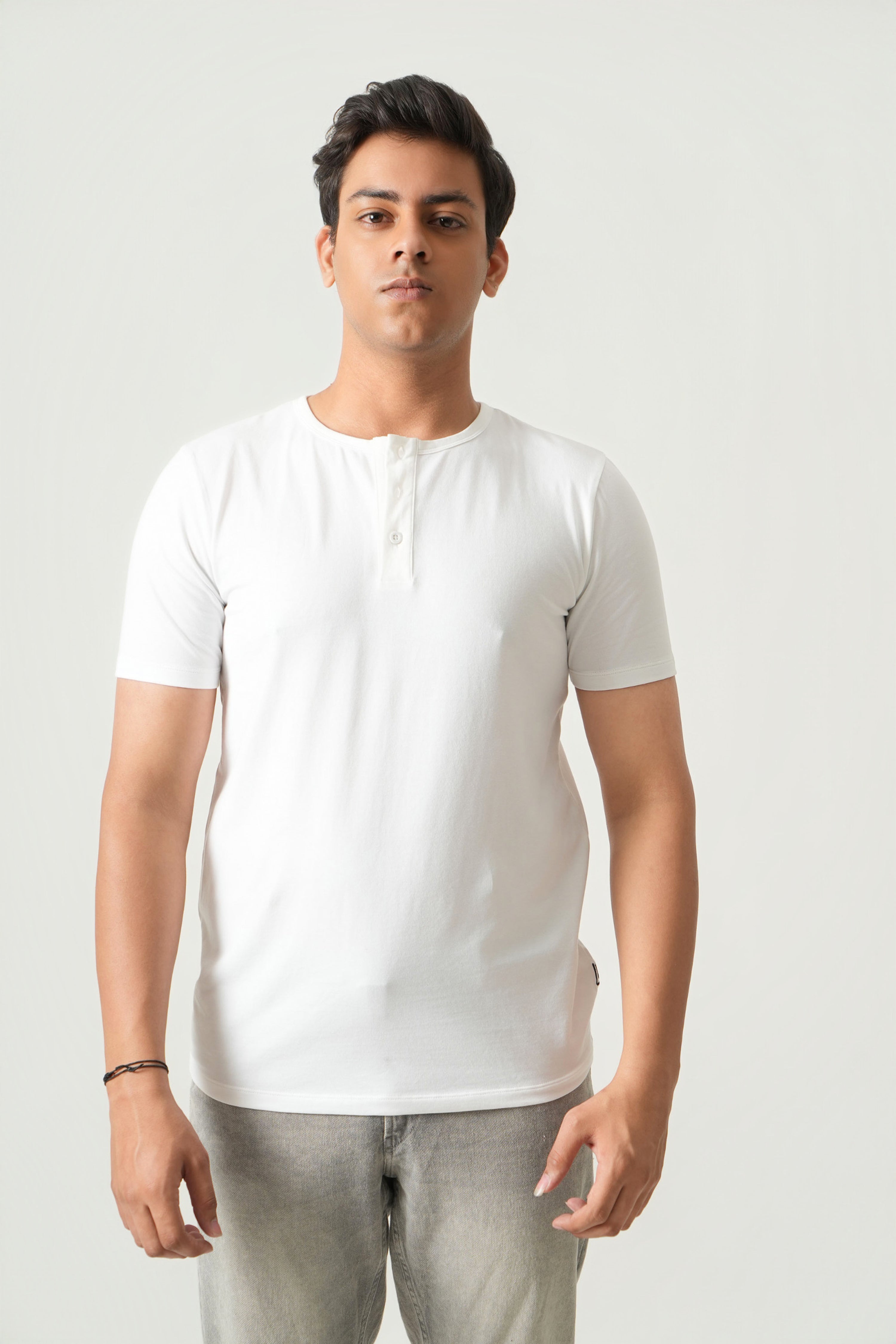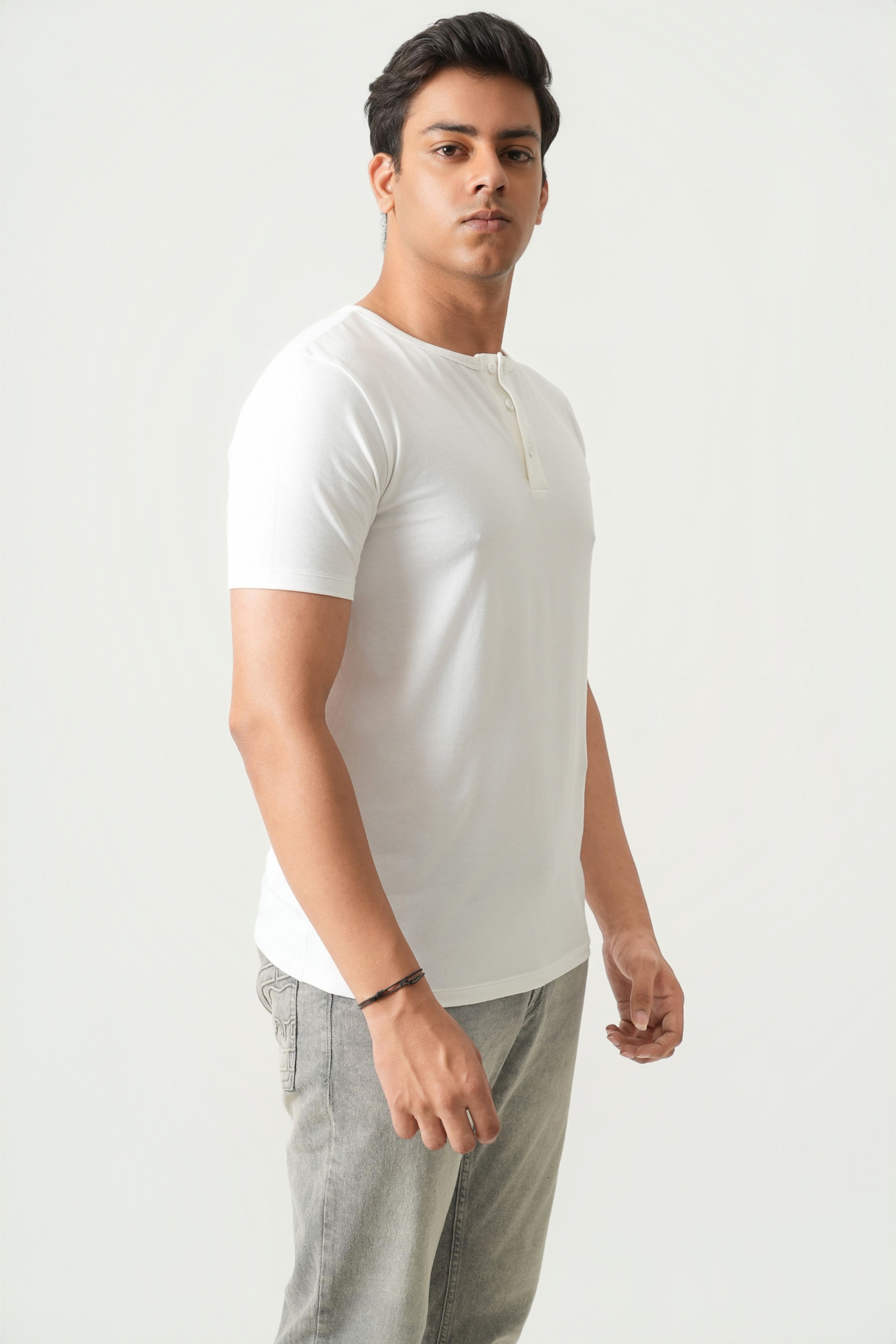 Define Fit - Henley Neck Short Sleeve - Classic White