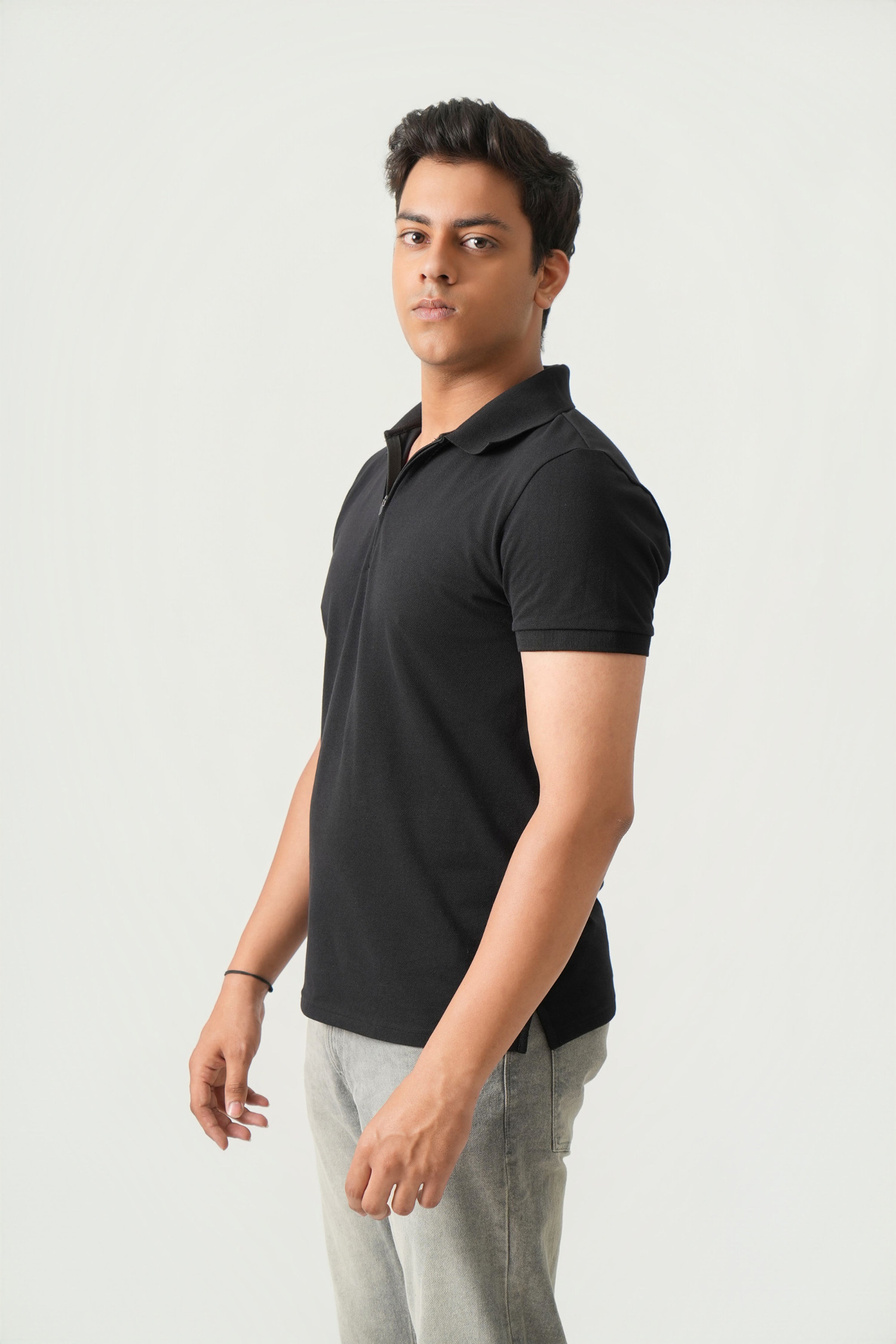 Define Fit - Zip Polo Short Sleeve - Charcoal Black
