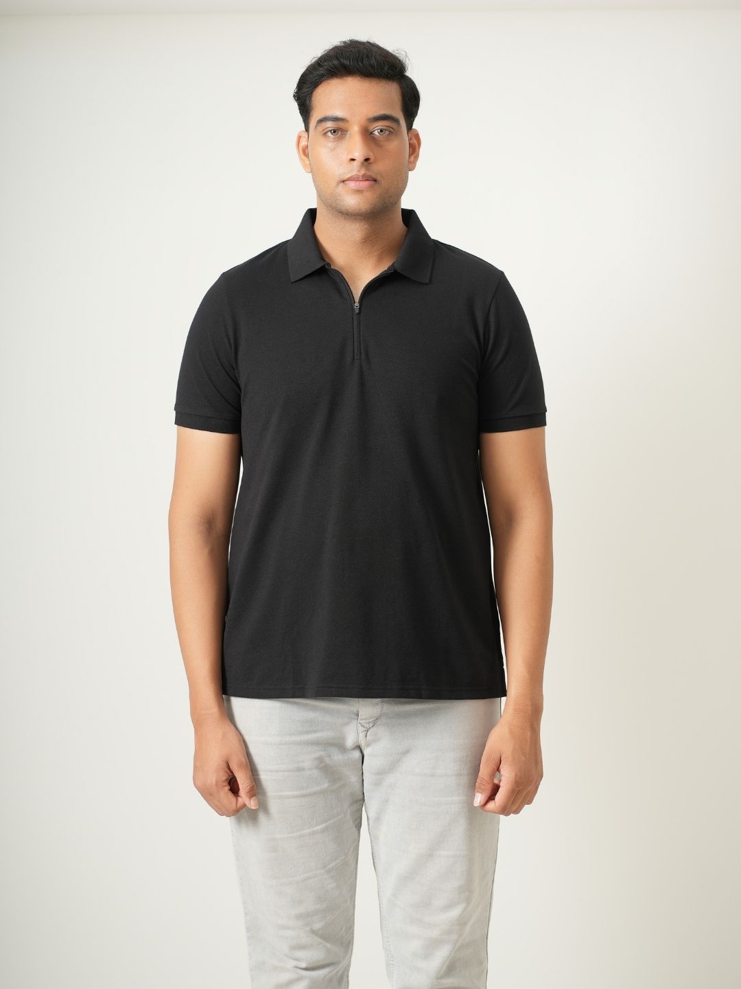 King Fit - Zip Polo Short Sleeve - Charcoal Black