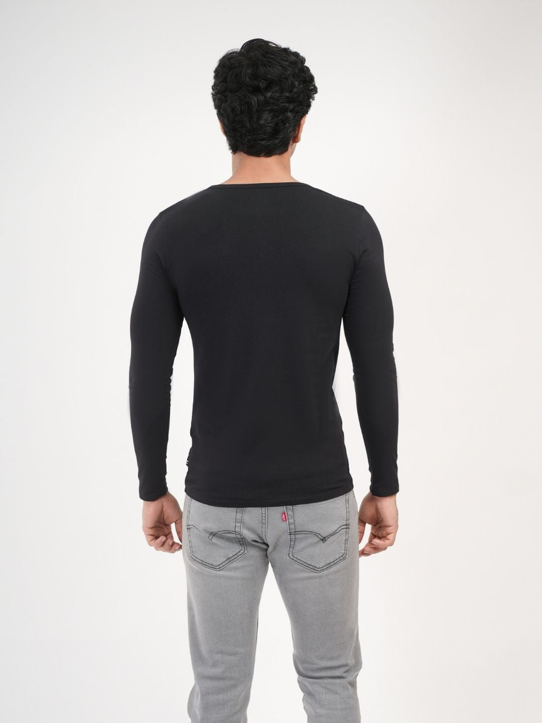 Power Fit - Henley Neck Long Sleeve - Charcoal Black
