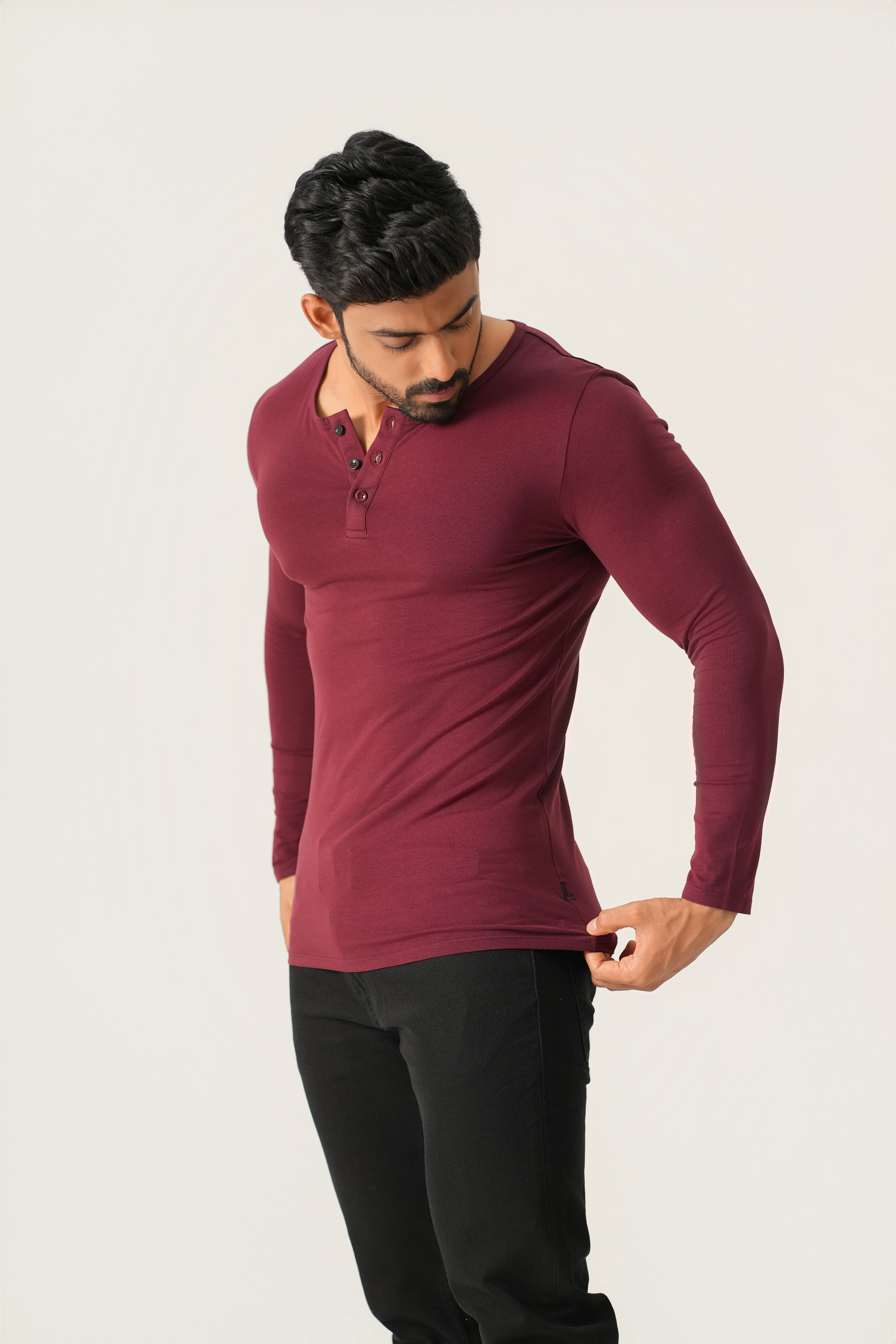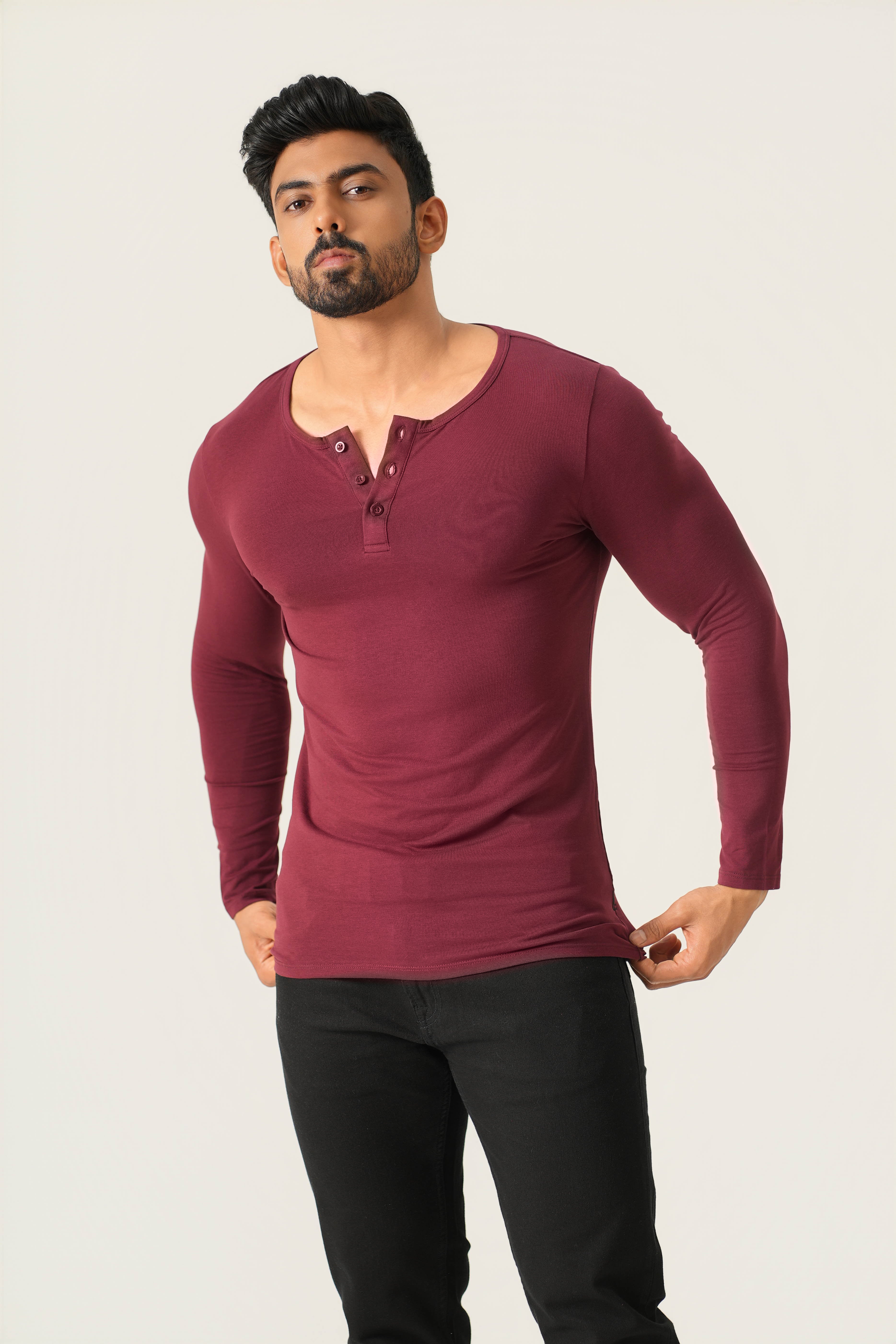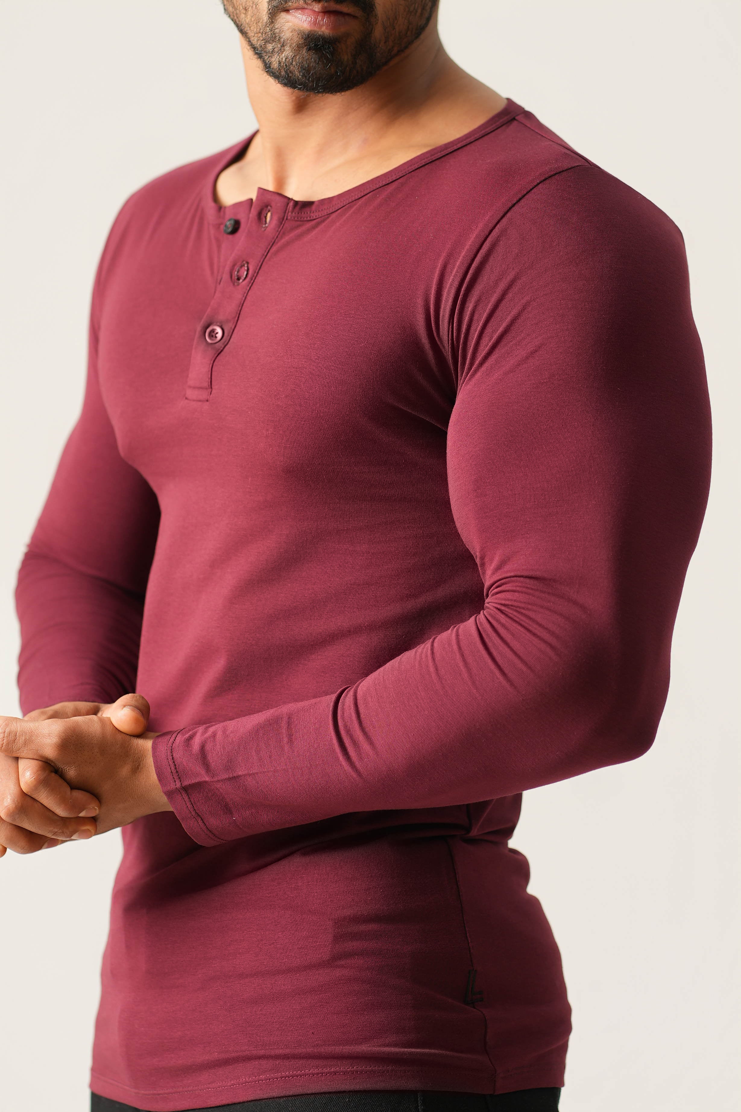 Power Fit - Henley Neck Long Sleeve - Red Rock