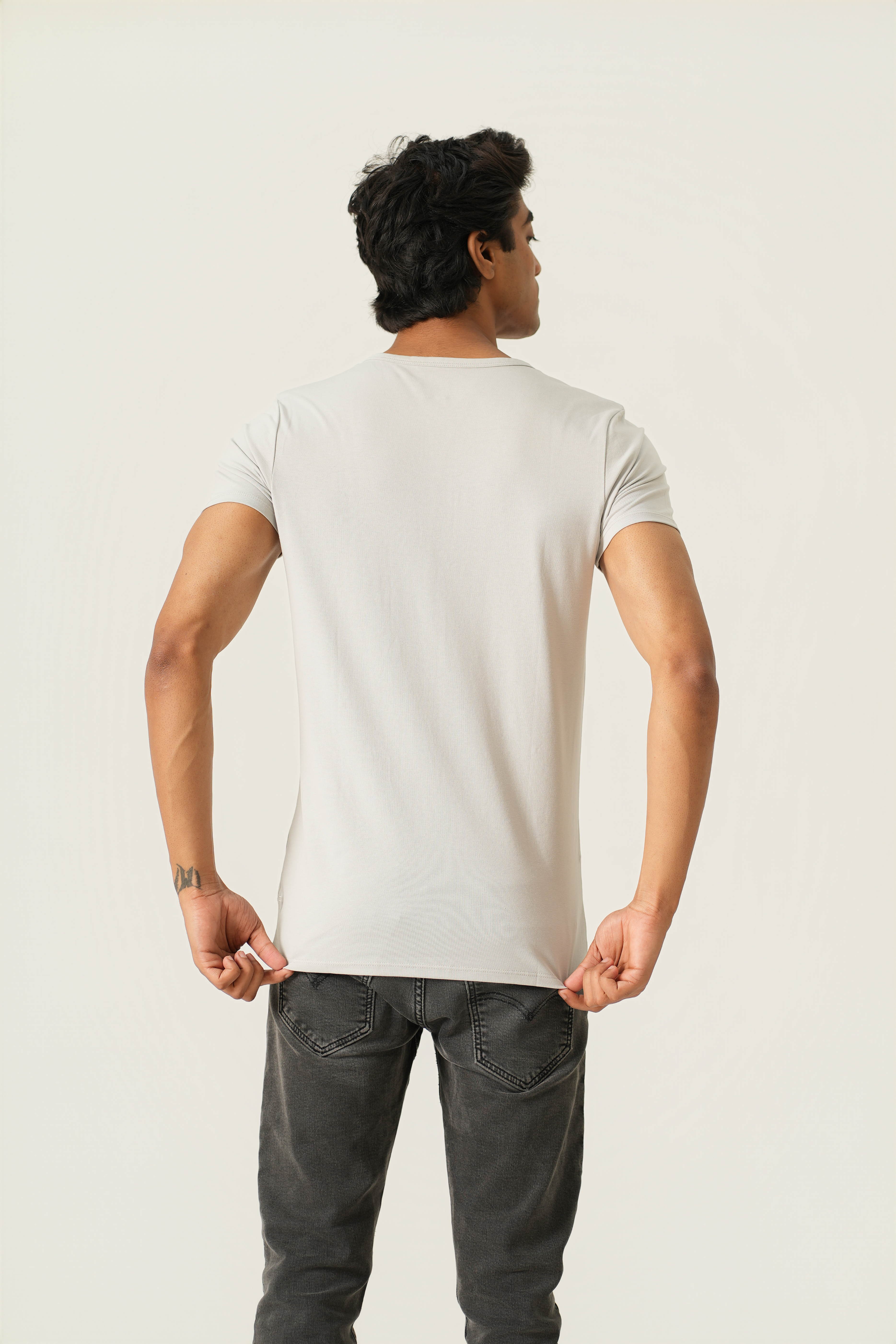 This fit is made for slim frames that often feel lost in regular tees. It adds shape where it’s needed most, broader at the shoulders and tapering at the waist. The result is a neat, structured look that defines the body without feeling tight or uncomfortable.