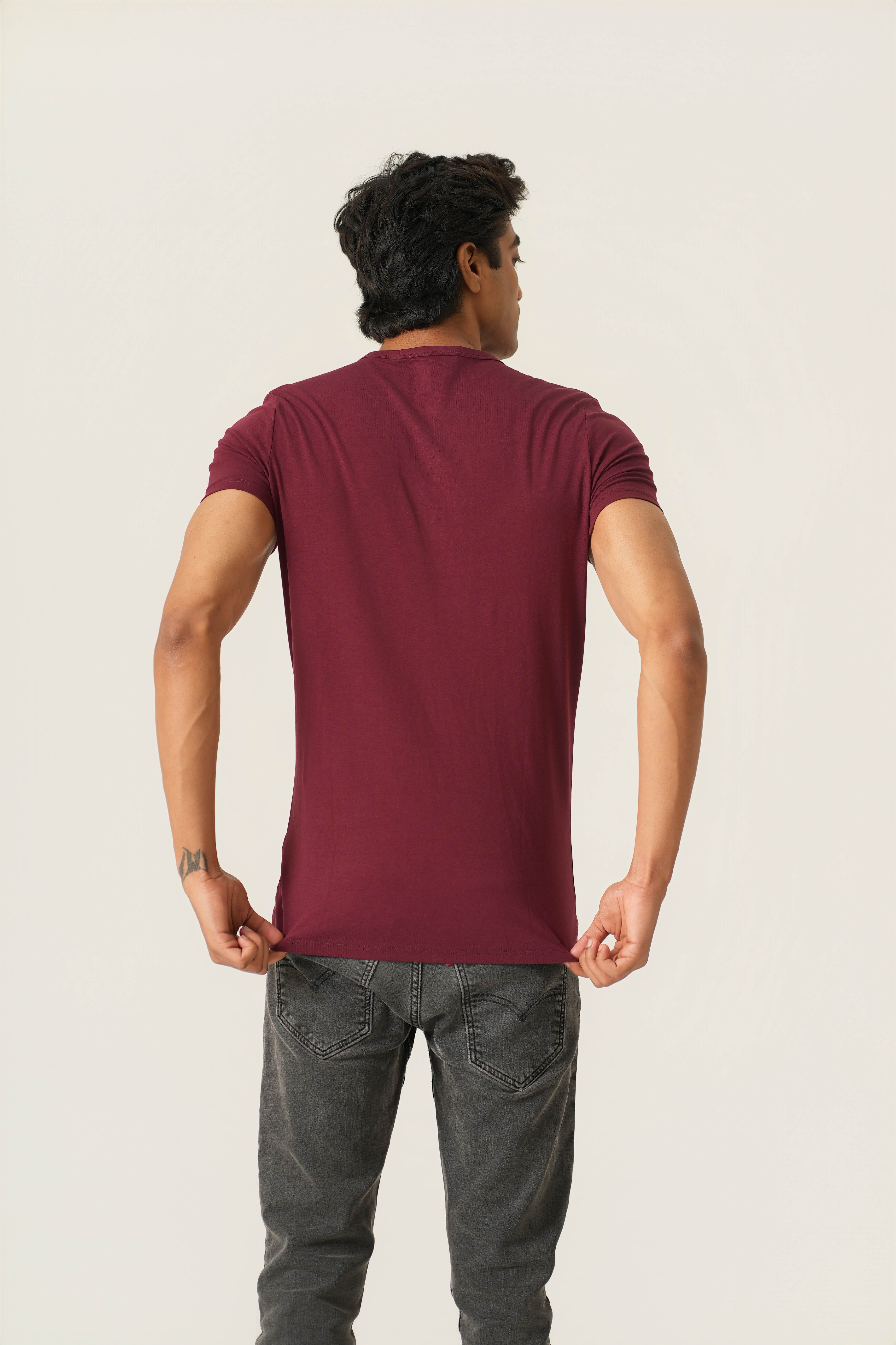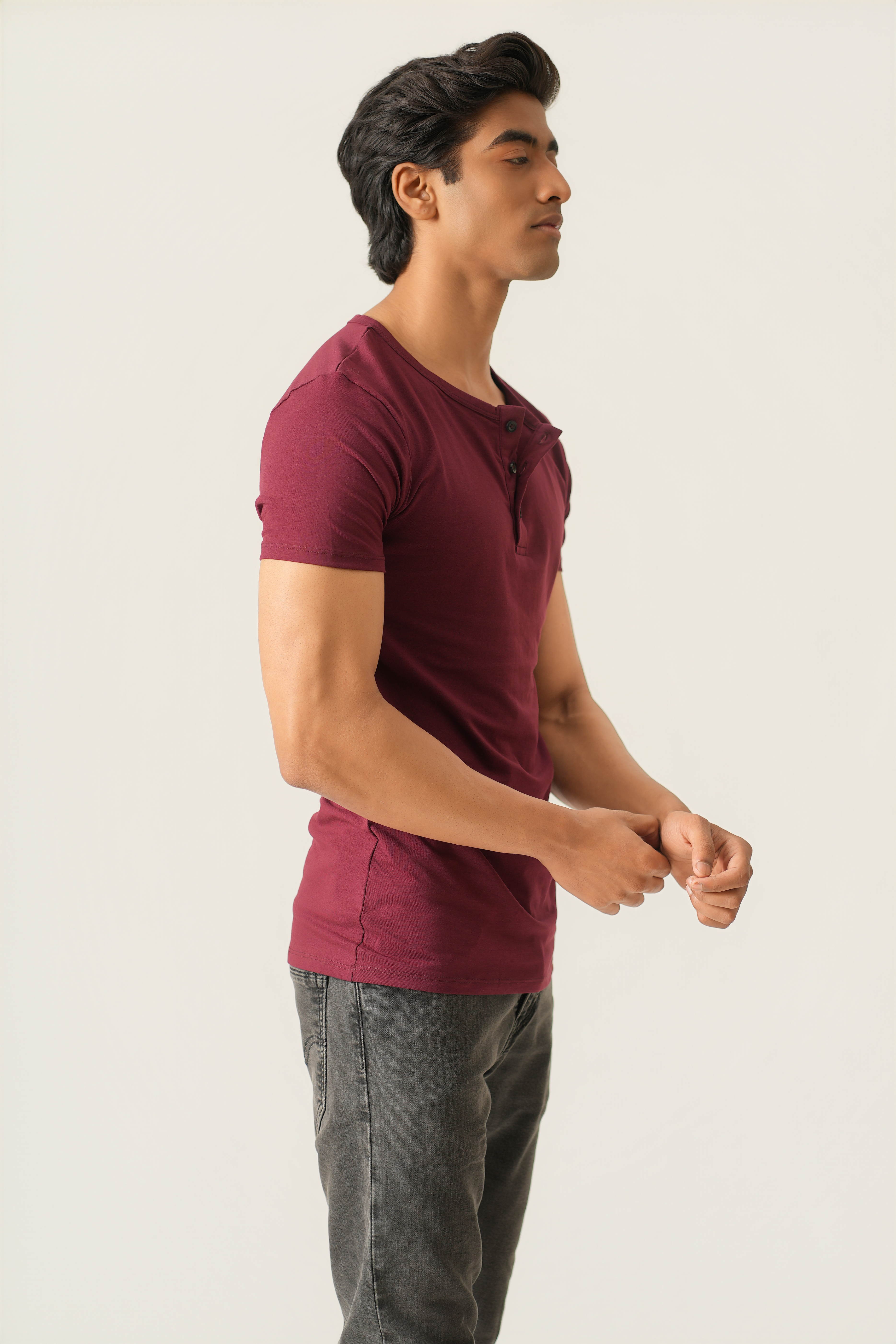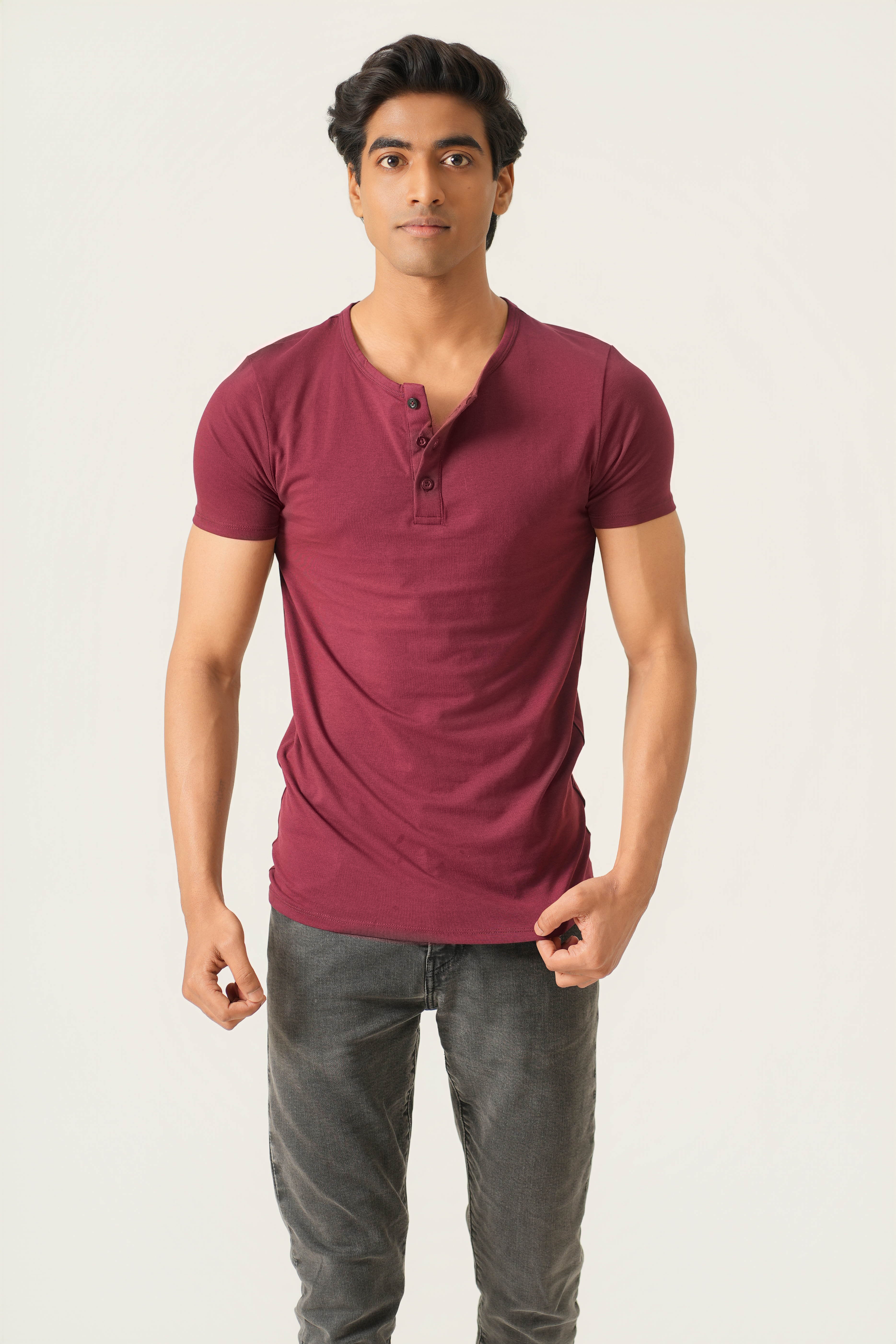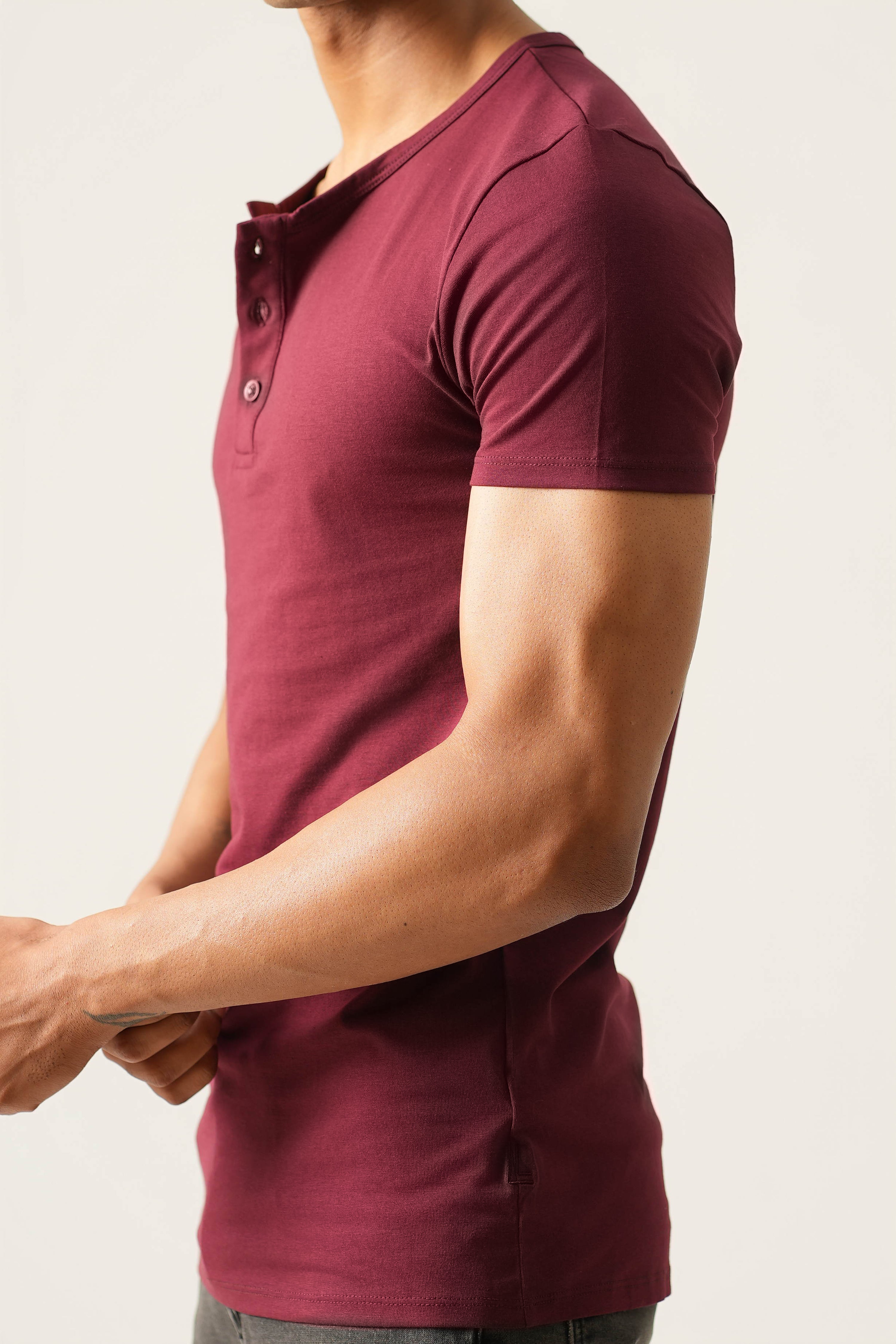 Sleek Fit- Henley Neck Short Sleeve- Red Rock