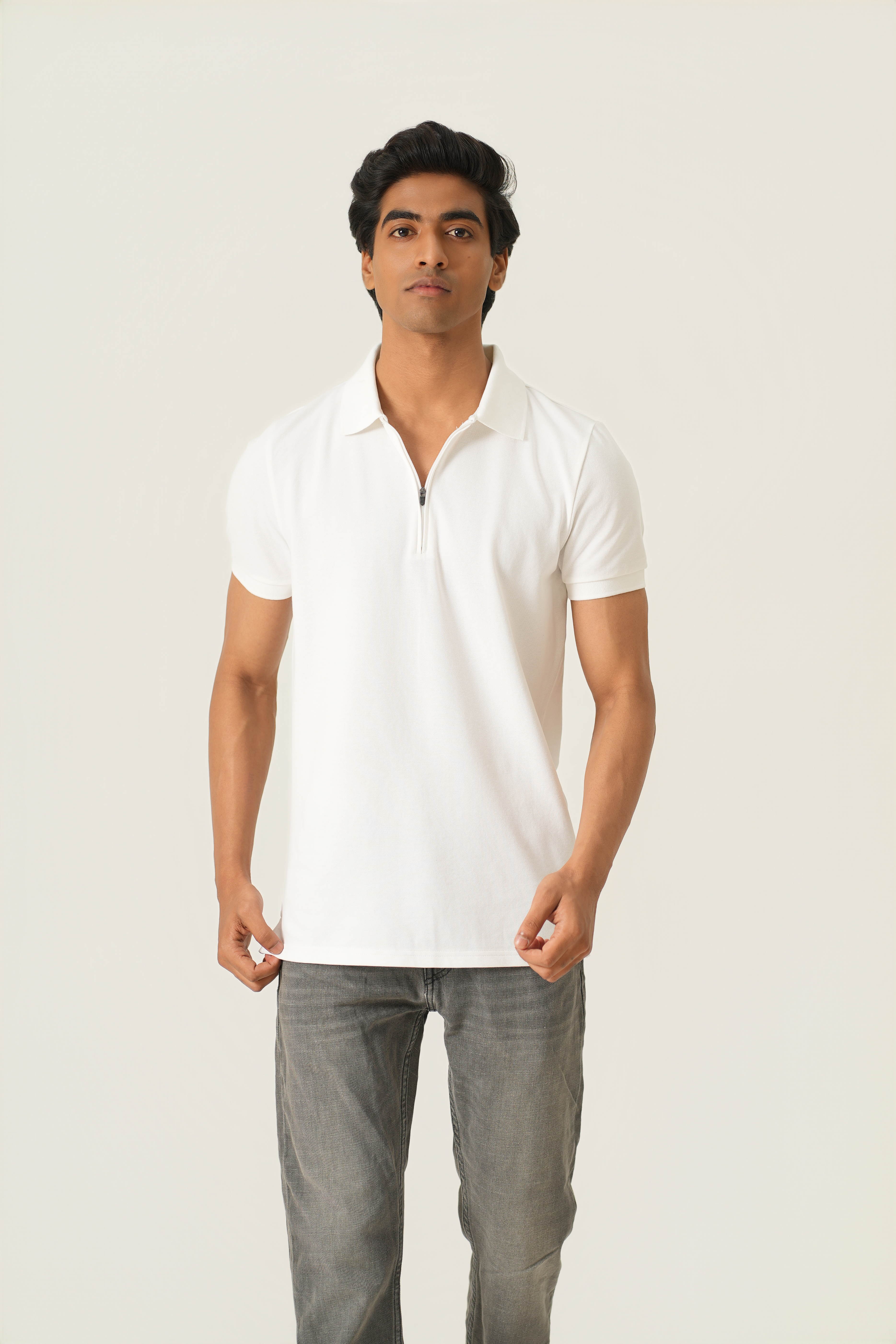 Sleek Fit - Zip Polo Short Sleeve - Classic White